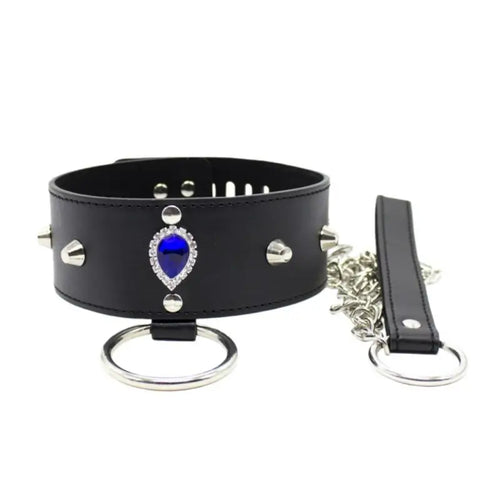 Haltungshalsband aus Drachen-Phönix-Brokat mit Kette - BDSM-Halsband -
