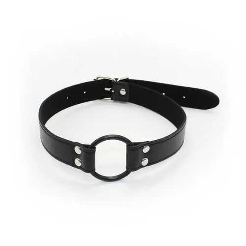 Schmetterlingsring-Knebel – Verstellbarer BDSM-Knebel aus schwarzem Leder für Paare -